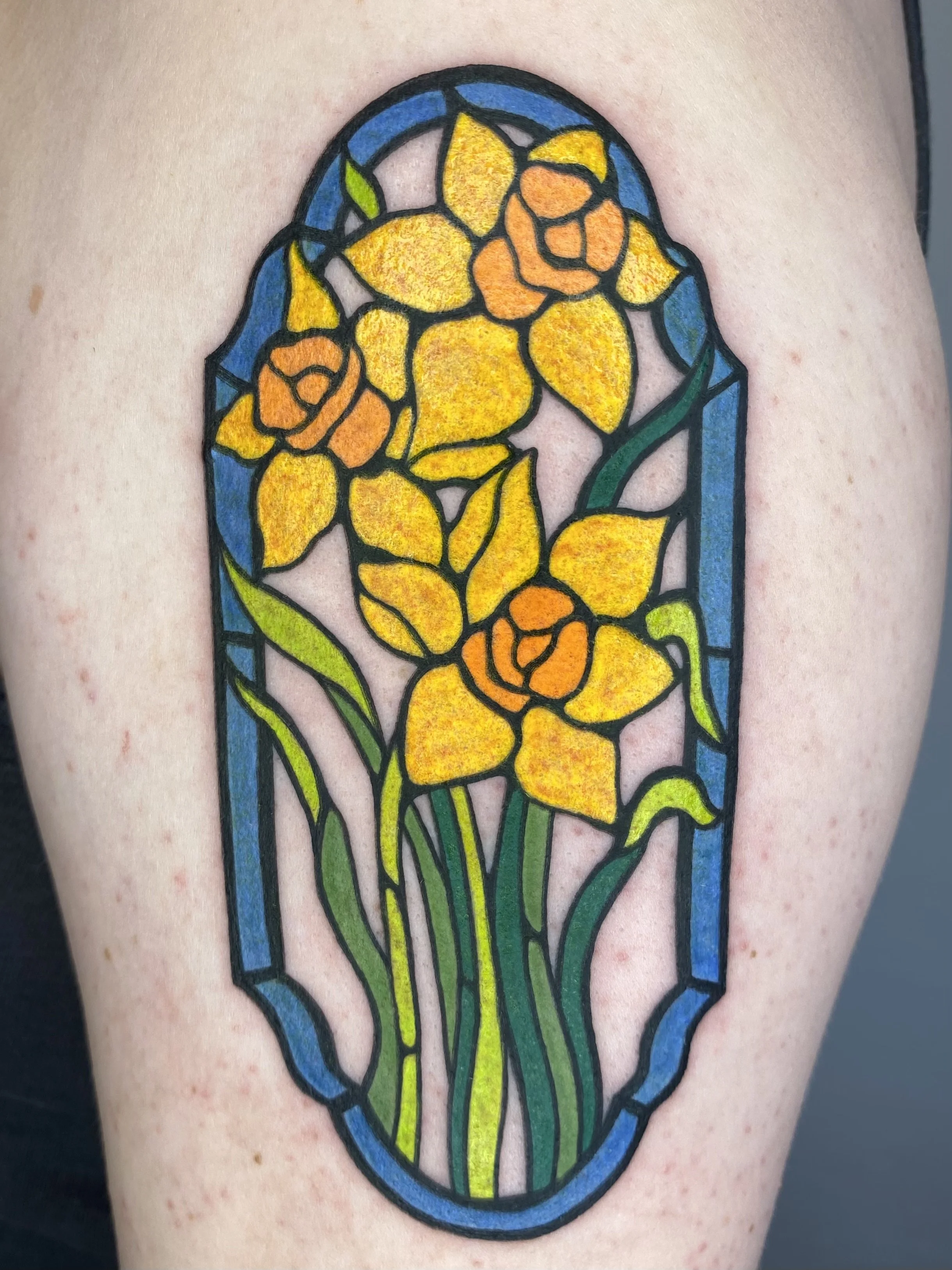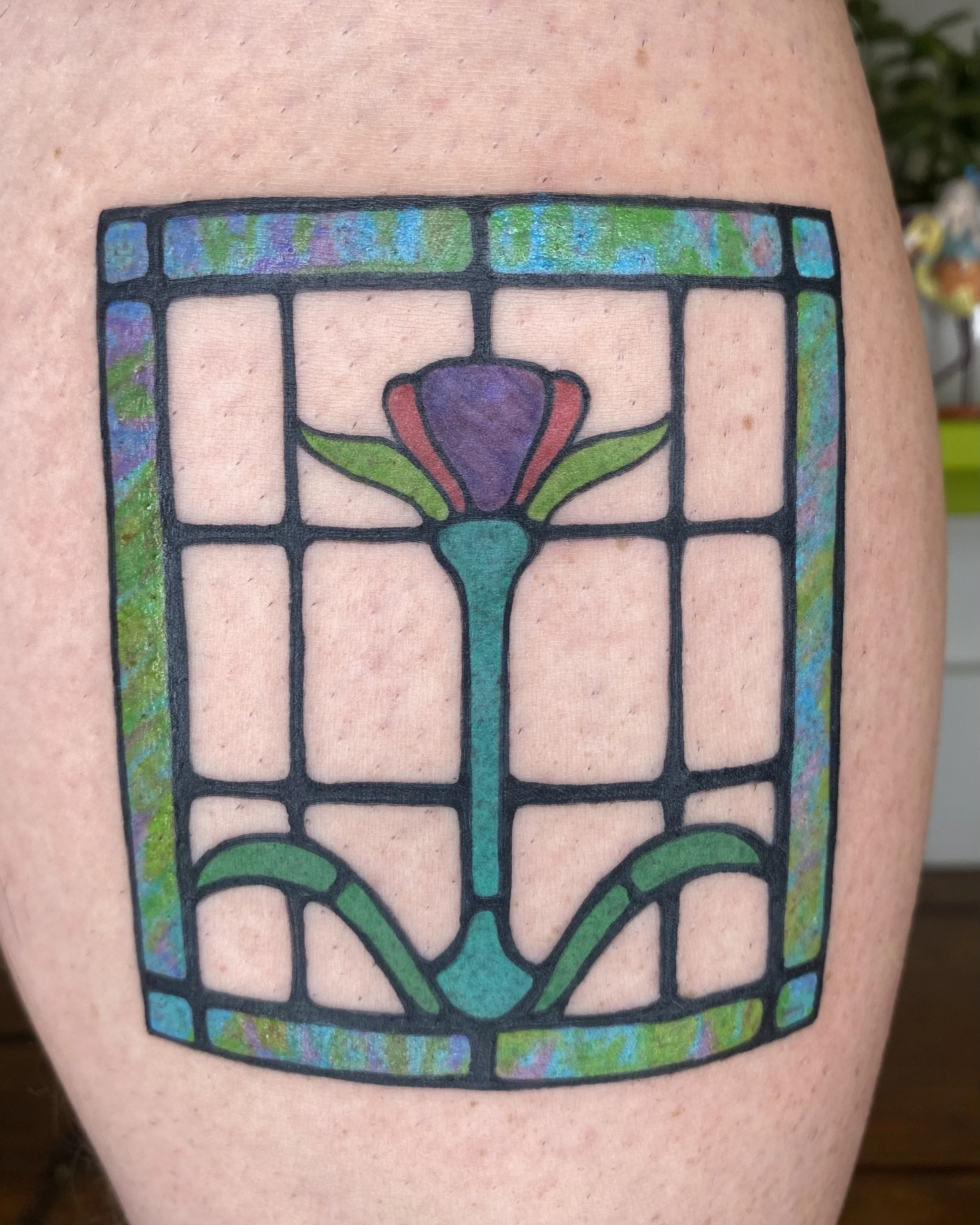 My stained glass-inspired tattoos are definitely some of my most popular pieces.